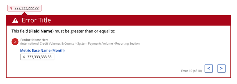 They would then be forced to take a screenshot or print out a copy of the errors listed on this error screen before heading back to the original screen where the errors initially occurred. This left users frustrated, confused and with no notion of what they were trying to fix.
